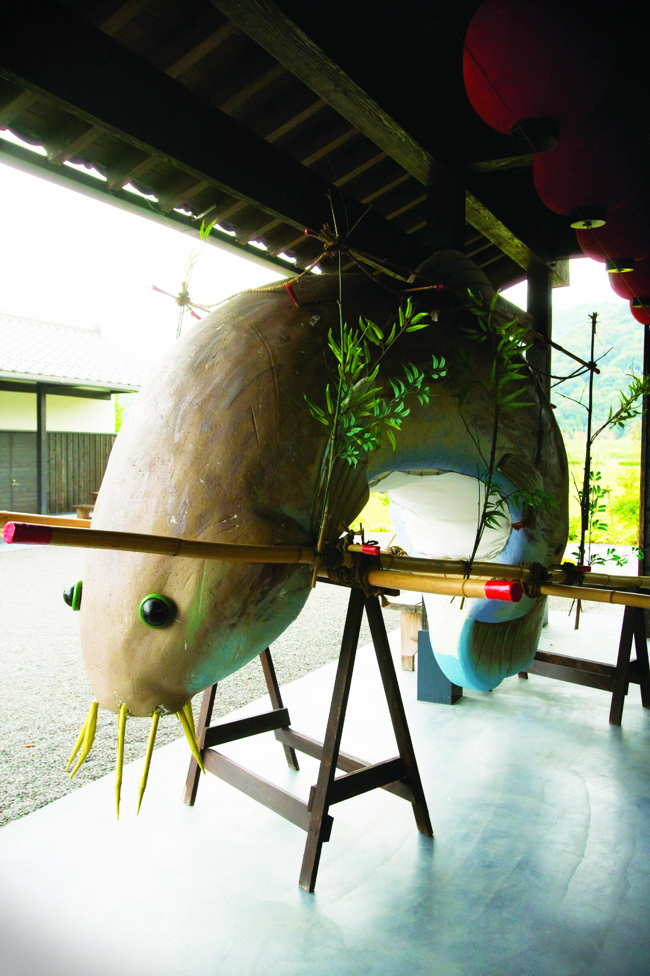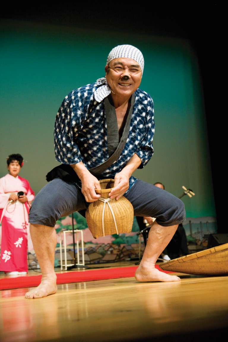 여전히 볼 때 마다 새로운 감성을 주는 아다치미술관의 정원과 미술관의 작품세계에 너무 깊이 빠져 정신 없는 나에게 야스기 관광과 담당인 노노무라상이 갑자기 미꾸라지를 잡으러 가잔다. 예술의 정취에 빠져 있는 나에게 미꾸라지라니 미꾸라지라니...... 그러나 알고 보니 에도시대 중기에 시작된 향토민요인 야스기 부시 연예관의 하이라이트인 '미꾸라지 잡기 춤'이란다. 야스기 시에 있는 야스기부시 연예관은 일본 전국에서 사랑 받고 있는 '민요-야스기부시'의 전당이다. 실제로 입구에 큰 미꾸라지 인형이 전시돼 있어 그 인기를 가늠해 볼 수 있겠다. 약 200명이 앉을 수 있는 좌식형태의 사지키석(관람석)에 앉으니 한 관계자가 미꾸라지 잡기 춤을 체험할 관객의 지원을 받는 것이 아닌가. 노노무라상의 손에 이끌려 얼떨결에 지원하게 됐으니.....