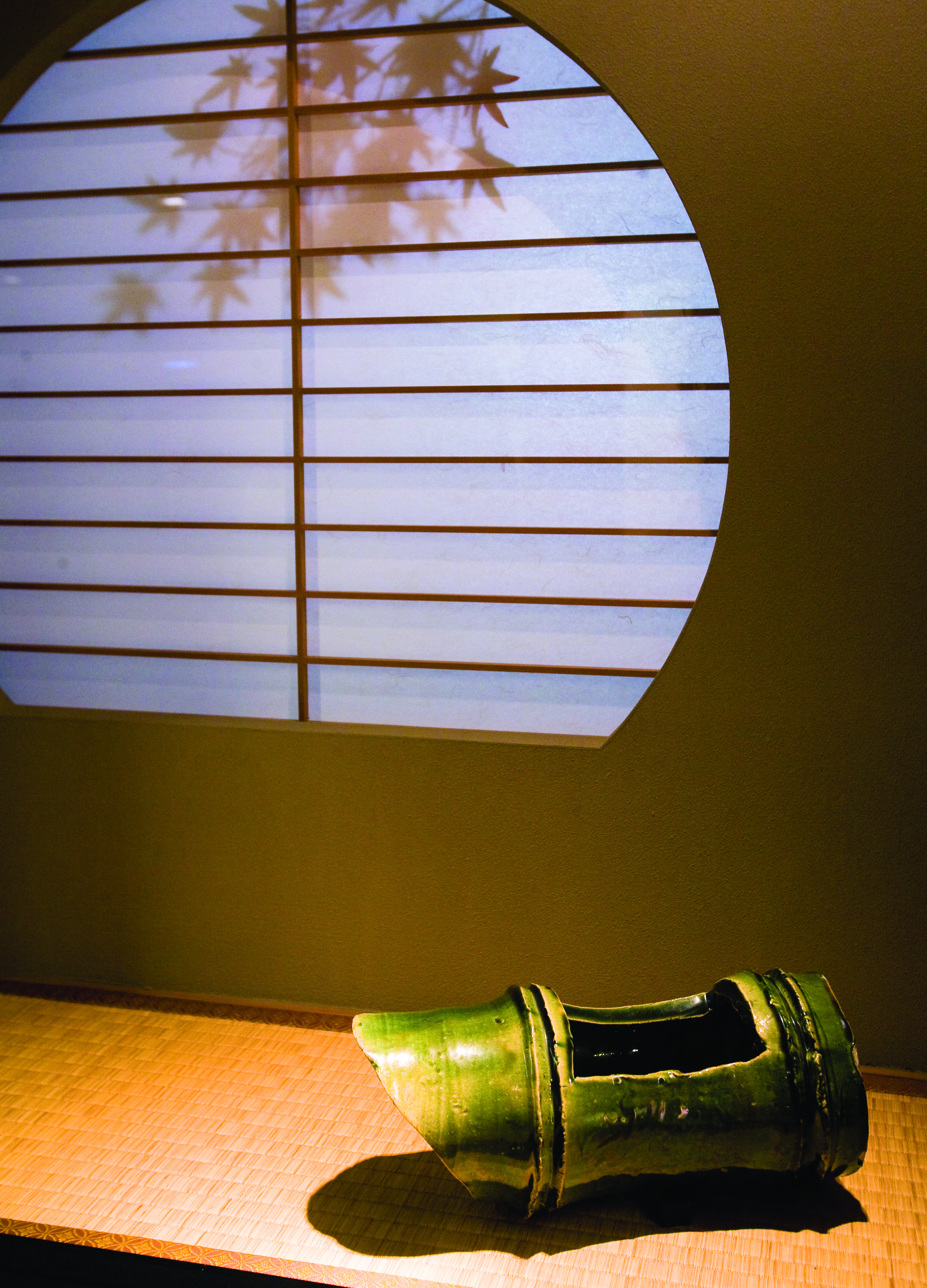 본관 2층으로 올라가면 키타오지 로산진(1883~1959)의 도예작품을 볼 수 있다. 도예가로서 키타오지 로산진의 이력이 독특하다. 그는 자신이 직접 운영하던 골동품 가게에서 특별손님만을 위해 내오던 요리가 평판이 좋아져 미식클럽을 병설하게 된 것을 계기로 스스로 도자기도 시작한다. 항상 새로운 것을 추구하는 그의 성향이 형태와 재료에 구애 받지 않는 다채로운 작품을 만들어 내게 하는 것 같다. 이 그릇에는 어떤 음식을 담았을까 상상하면서 둘러보는 것도 재미있다. 특히 반짝이는 초록빛 오리베유 기물들이 비 오는 날 아다치 정원의 초록과 닮아 코를 대면 촉촉한 풀잎 향이 날 것 같았다.